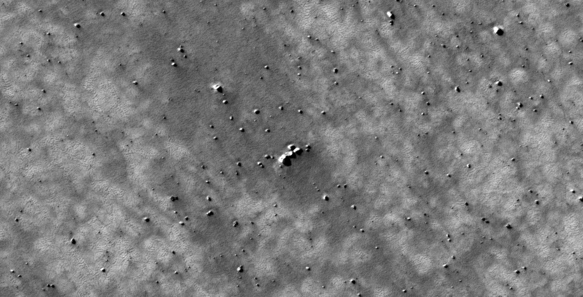 Discovered are what looks like a huge debris field of machine, vehicle, craft and structure pieces and parts (average size of these anomalies is between 3 m and 10 m across).