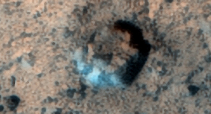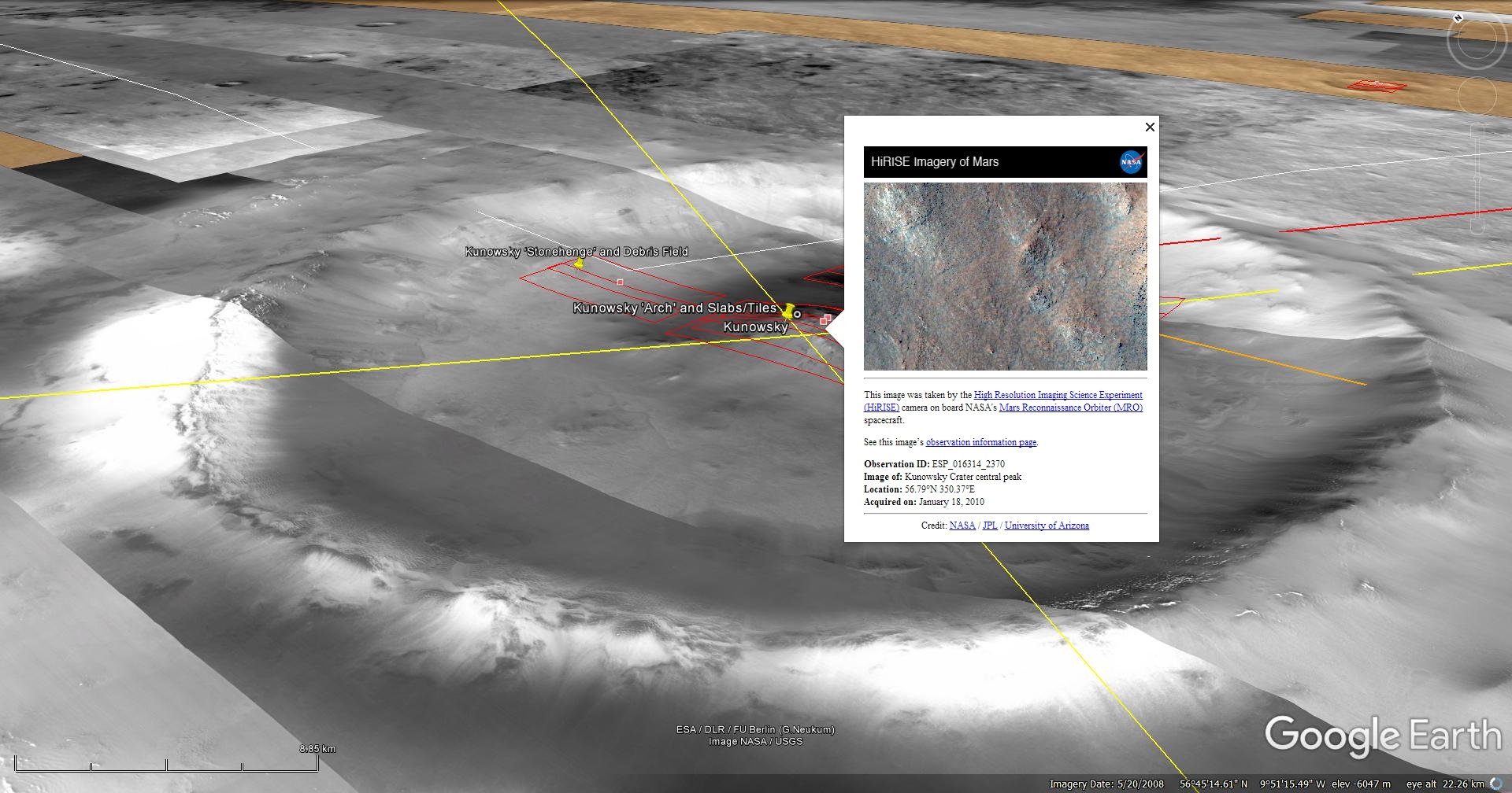 The photograph analyzed here (ESP_016314_2370) was taken by NASA’s Mars Reconnaissance Orbiter on 18 January 2010 and is described as ‘Kunowsky Crater Central Peak.’