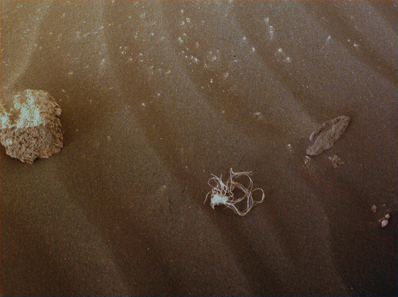 Here I feature an item that is totally out-of-place; it looks almost like a ball of wire or string. All the rovers parts are mounted securely in place and nothing resembles an untidy part like this anomaly. Did a piece of wire or string come off the rover? If so, how did it end up in a ball?