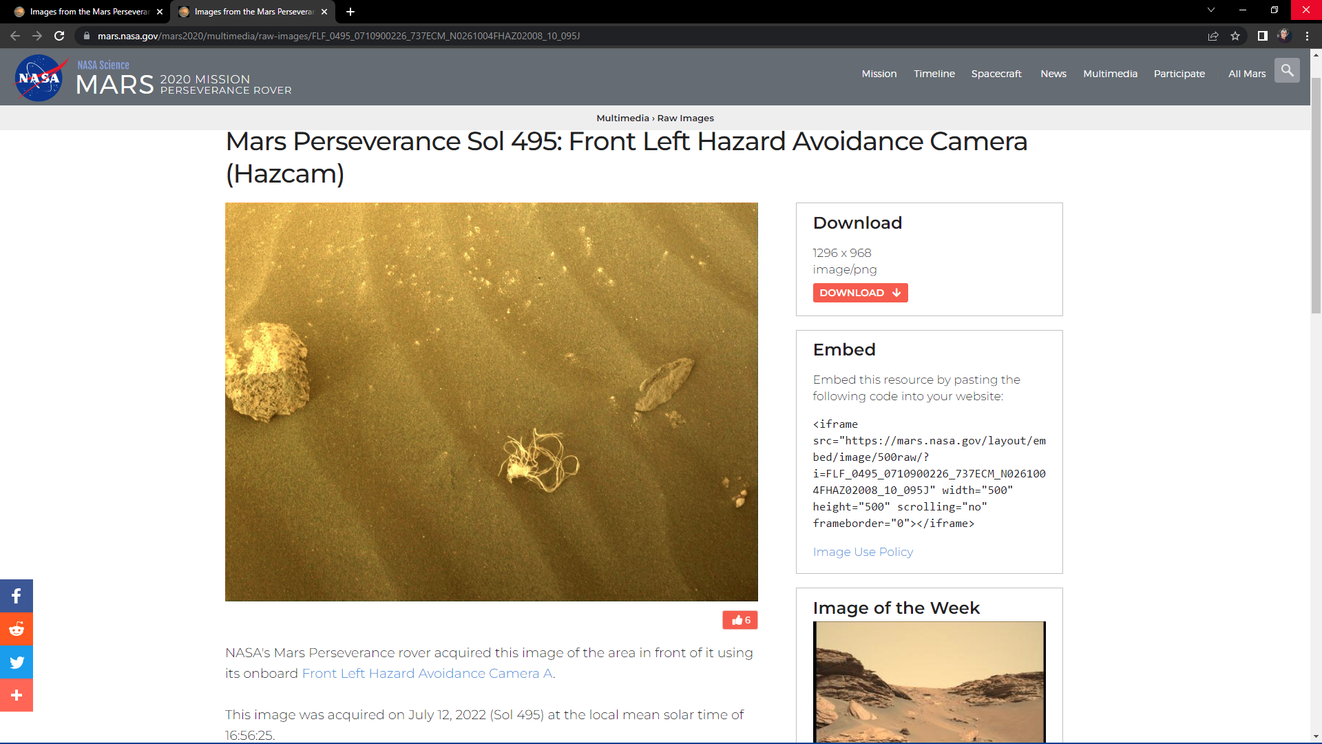 My YouTube video featuring: ‘PERSEVERANCE ROVER Spots Strange ‘Ball of Wire’-Like Artifact (Sol 495):’