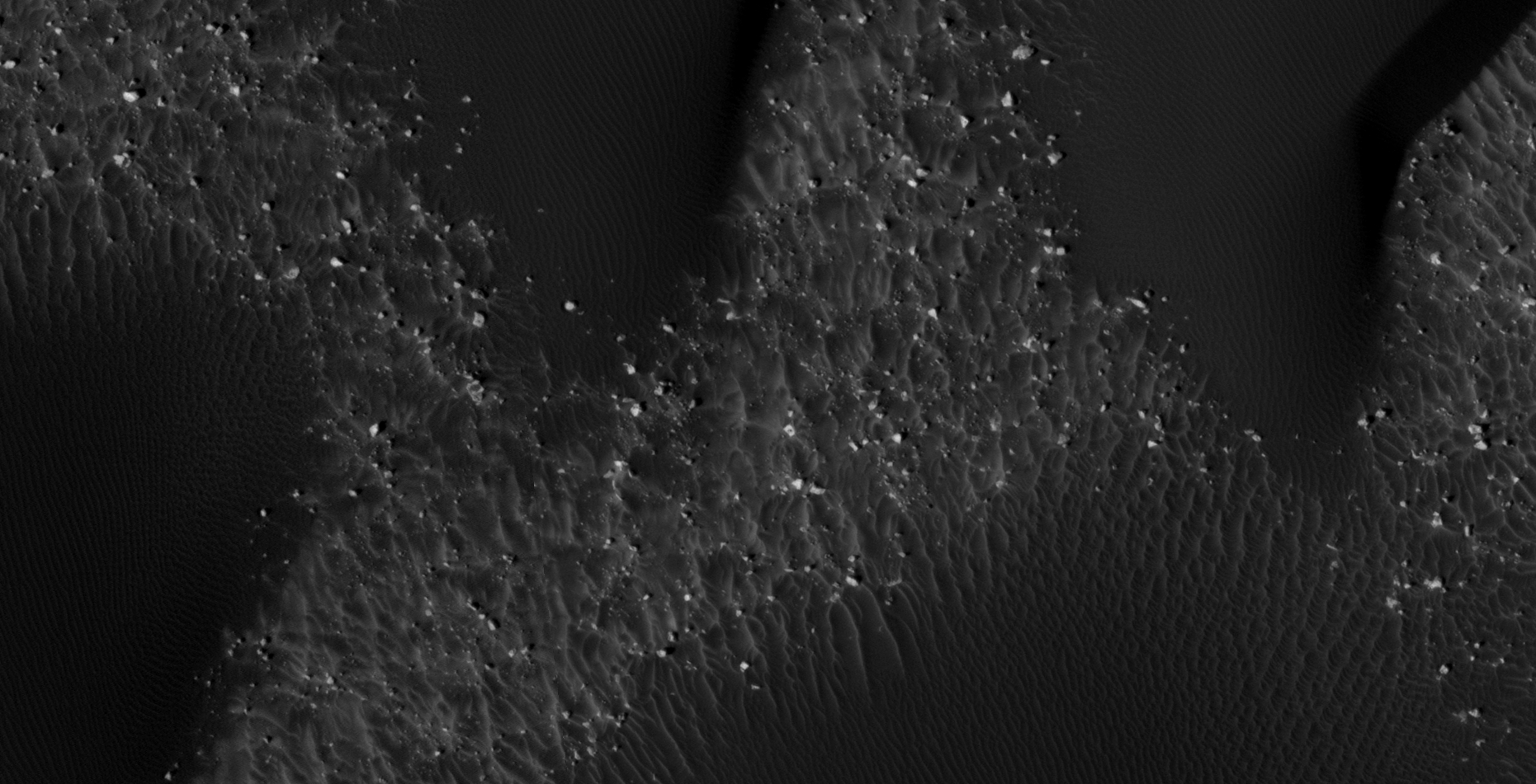 The photograph analyzed here (ESP_072335_2295) was acquired by NASA’s Mars Reconnaissance Orbiter on 31 December 2021 and is described as ‘Dune Monitoring.’
