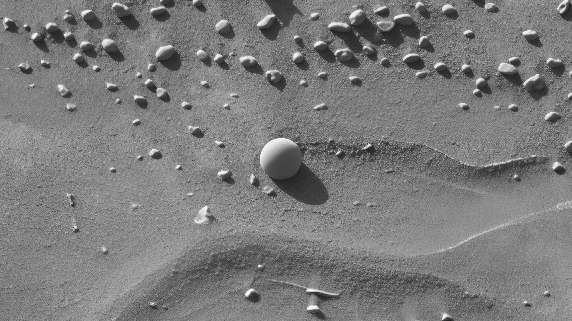Featured here is a fourth sphere I discovered on Mars in a recent Curiosity photograph. The four spheres were photographed by Curiosity over the past four months. All four spheres are about the same size and shape. Unlike the “Blueberries” NASA discovered years ago, these are huge in comparison and are they not clumped together.