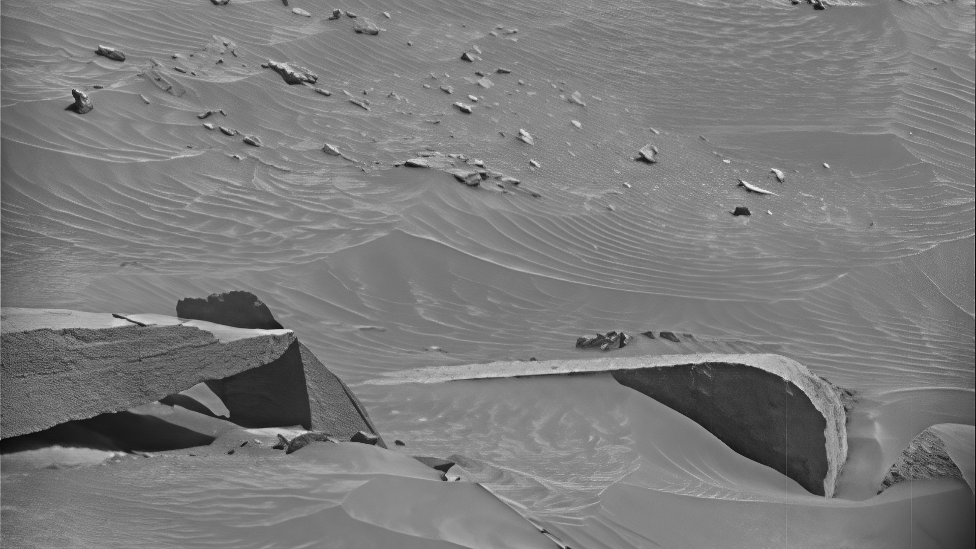 The photograph analyzed here was taken by the Mast Camera (Mastcam) onboard NASA’s Mars rover Curiosity on Sol 4190 (2024-05-20 07:46:34 UTC).